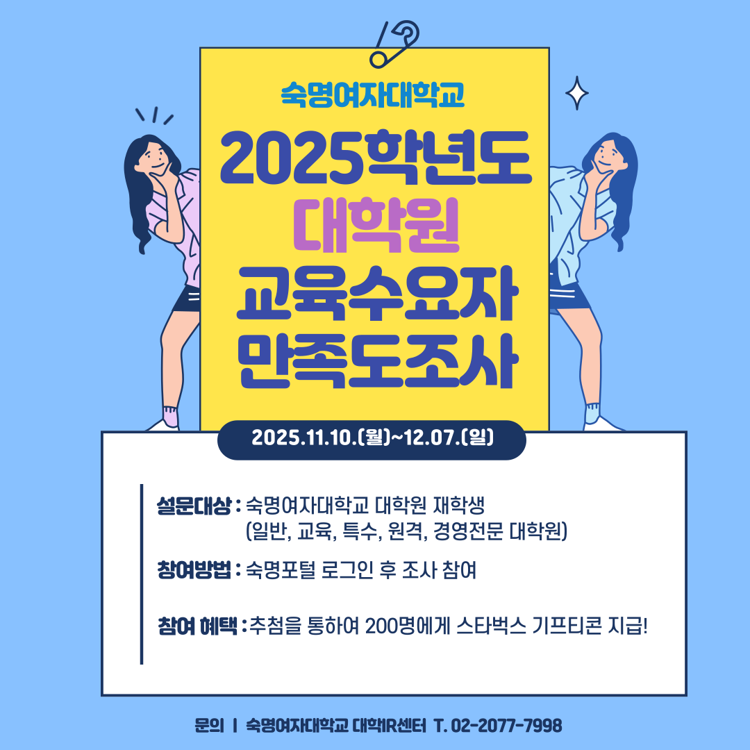 [대학IR센터] 2025학년도 대학원 교육수요자 만족도조사 시행 안내(~12/7(일)까지)